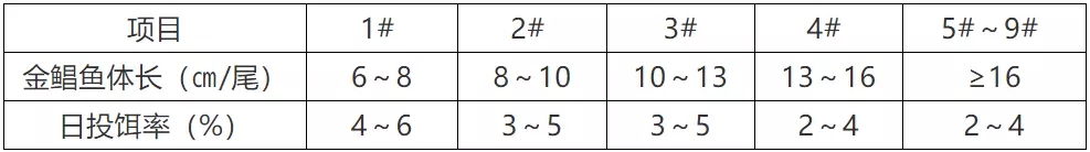 ? 適時轉換合適飼料,并在換料時以兩種規格飼料混合投喂,以減少養殖魚大小差異。